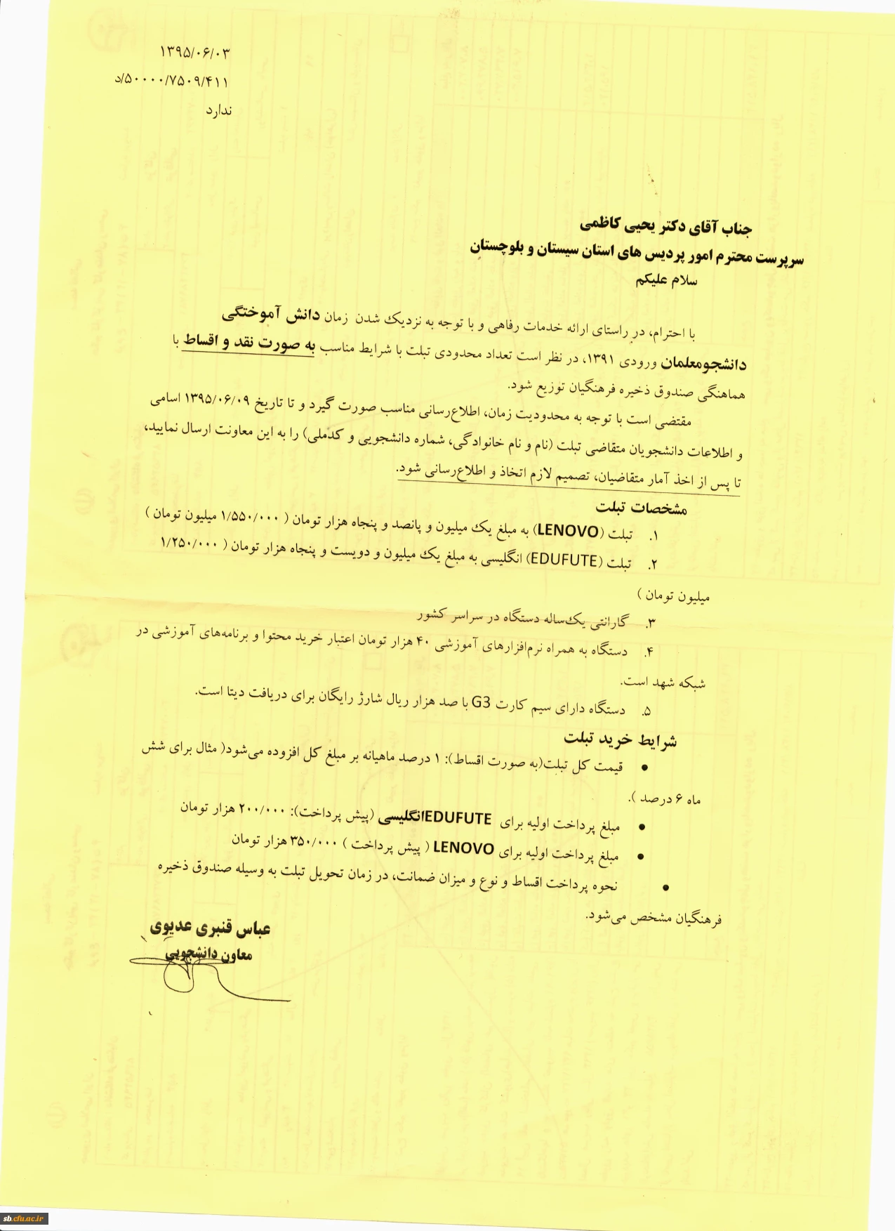 فروش تبلت ویژه دانشجویان ورودی 91