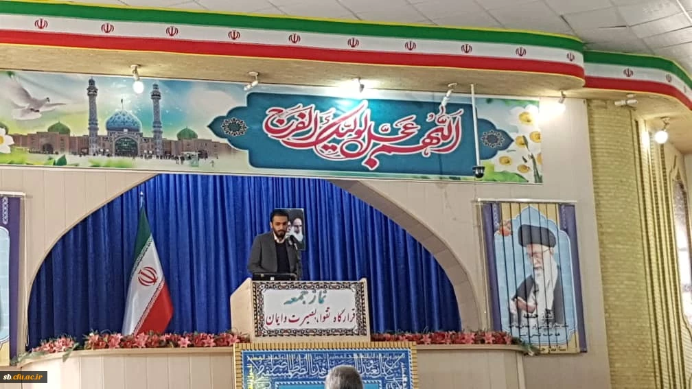 مسئول بسیج دانشجویی دانشگاه فرهنگیان سیستان وبلوچستان ، سخنران پیش از خطبه های نماز جمعه این هفته زاهدان شد. 2