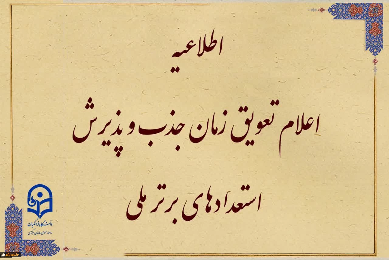 امتیاز دهید : قابل توجه متقاضیان واجد شرایط جذب و پذیرش استعدادهای برتر ملی 2 چهارشنبه 16 آبان 1403 ساعت 7:51