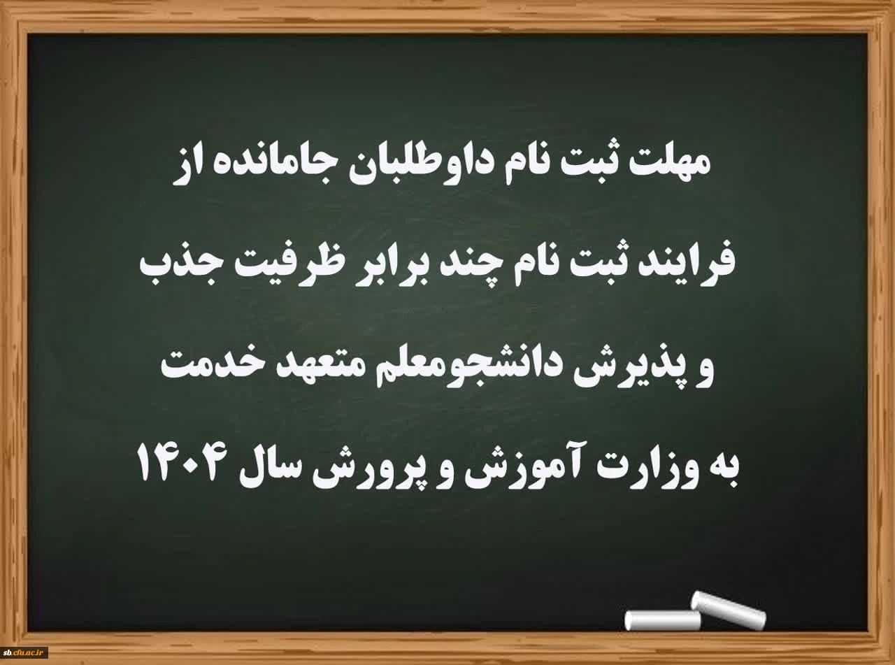 مهلت ثبت نام داوطلبان جامانده از فرایند ثبت نام چند برابر ظرفیت جذب و پذیرش دانشجومعلم متعهد خدمت به وزارت آموزش و پرورش سال ۱۴۰۴ 2